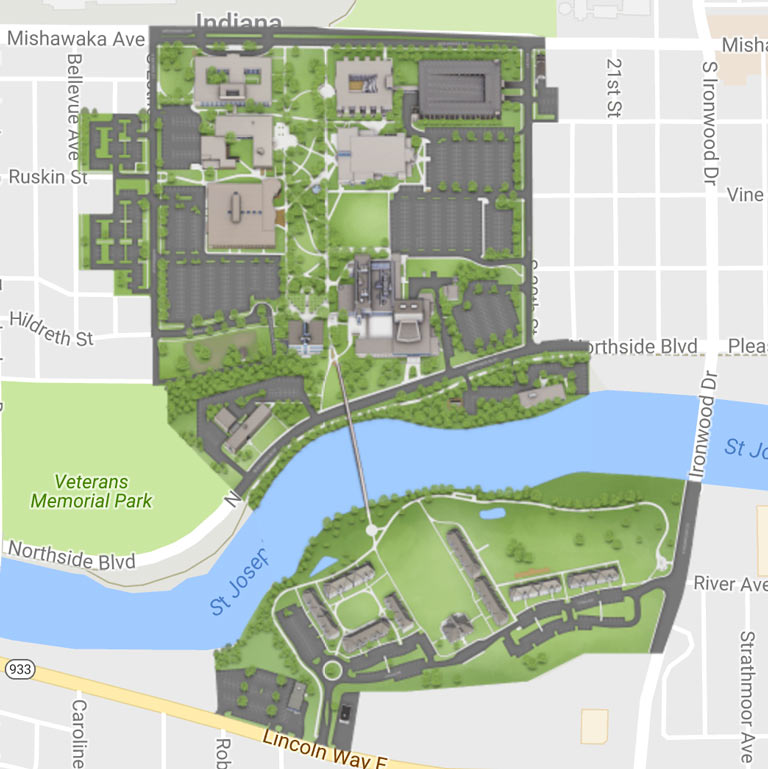 The IU South Bend Administration Building is located at 1700 Mishawaka Avenue. You can find parking in the lots located along 20th Street or Esther Street. When you arrive on campus, you can use our interactive campus map to help you get around.