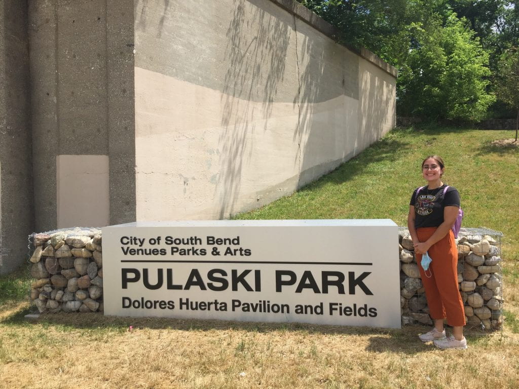 MLS Graduate student, Anna Ortega, has been working on a community-based research project with Dr. Monica Tetzlaff and La Casa de Amistad. In honor of the celebration of the opening of the Dolores Huerta Pavilion within Pulaski Park in South Bend, Anna has been researching Dolores Huerta, a national Civil Rights activist who has played a major role in the Farmworkers' Movement.